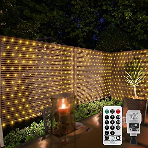 300 LED-ljusnät 4 x 2 m, varmvit ljuskedja, nät med fjärrkontroll, timer, 8 lägen, ljuskedjor, inomhus och utomhus, dekoration, ljusslinga, ljusgardin med kontakt för rum, jul, fest, bröllop