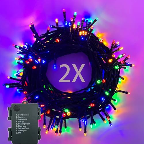 Ljusslinga batteri 2 st 100 lysdioder 10 m LED-ljuskedja utomhus och inomhus med timer, 8 lägen ljuskedjor batteridriven för jul, trädgård, fester, grön kabel vattentät, färgglad