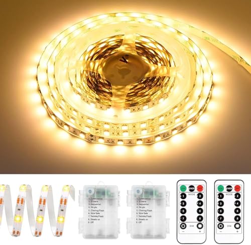 LED-remsa, Batteridriven, 5 m, 8 Lägen, Ljusslinga Med Timer, Dimbar Med Fjärrkontroll, Vattentäta Ljuslister