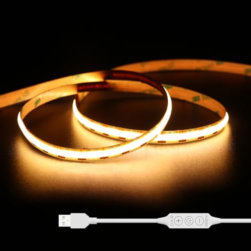 GINGSOW USB LED-ljusslinga COB 5 V varmvit 2 700 K, 2 m, dimbar densitet 640 lysdioder LED COB flexibel skärbar LED-remsa för bakgrundsbelysning, TV, skåp, sovrum, belysning hem gör-det-själv