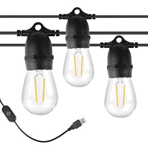 Spacelumen USB-drivna ljusslingor med 10 okrossbara S14 LED-glödlampor, 24,6 FT vattentät uteplats ljusslinga för utomhusbruk, camping, trädgård, LED julgransbelysning dekorationer