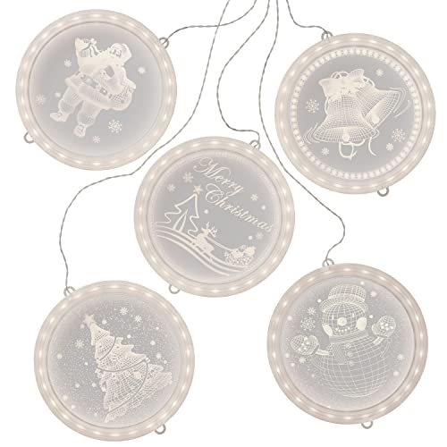 AmeliaHome LED fönsterdekoration, akrylhängare, ljuskedja, set om 5 USB ljusslinga, juldekoration rund, vinter