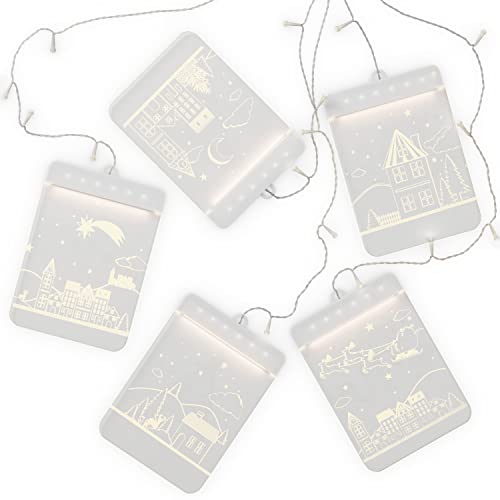 AmeliaHome LED-fönsterdekoration, akrylhängare, ljuskedja, set om 5 USB ljusslinga, juldekoration rektangulär, jul stad