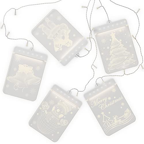 AmeliaHome LED-fönsterdekoration, akrylanhänge, ljusslinga, set om 5, USB, ljusslinga, juldekoration, rektangulär, julstämning
