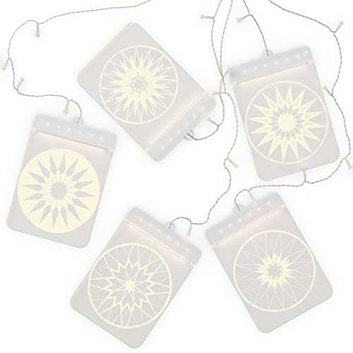 AmeliaHome LED fönsterdekoration, akrylhängare, ljuskedja, set om 5, USB-ljusslinga, juldekoration rund mandala