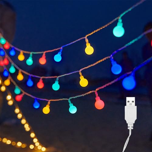 ENLACE USB LED-ljusslinga, 3 m, 20 LED, färgglada kulor, ljuskedjor, USB-drift, ljuskedja kula för juldekoration, bröllop, födelsedag, fest, rum, balkongdekoration, camping, inomhus och utomhus