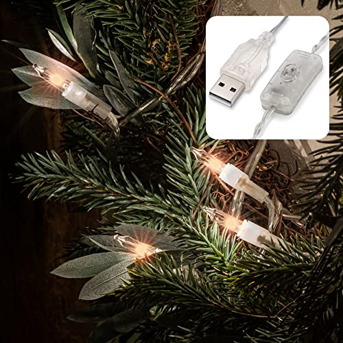 hellum LED-ljuskedja inuti, set om 2 stycken 35 LED-ljuskedjor med strömbrytare, varmvit LED reservlampor, ljuskedja med USB-port, kabel transparent upplyst 408 cm, Pisello ljusslinga 150698