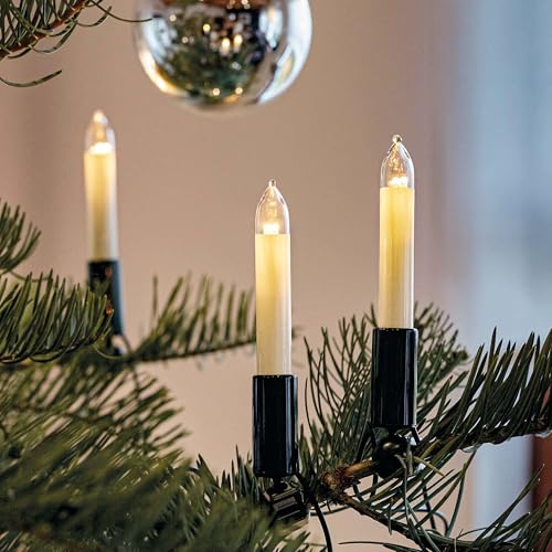 Hellum Ljusslinga julgran inomhus tillverkad i Tyskland, julgransbelysning med klämmor, 30 lampor, 2030 cm upplyst, grön kabel och vitt skaft, för inomhusbruk med delbar kontakt 813012