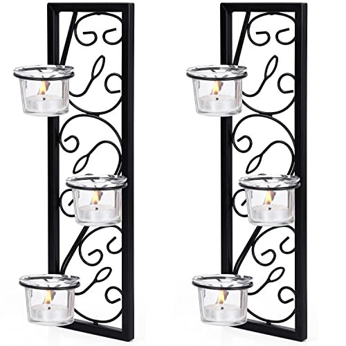 Belle Vous 2-Pack med Svarta Väggljushållare i Järn - H35,2 cm Väggmonterad Ljusstake - Hängande Värmeljusstakar för Vardagsrum, Badrum, Sovrum, Matsal & Bröllopsdekoration
