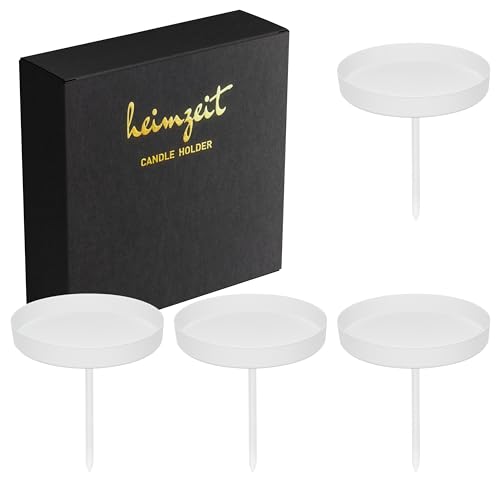 heimzeit Ljushållare för Blockljus upp till Ø80 mm och Bords Ljus i Metall [4 Stycken] Färg: Vit, Stilren Design, Ljusstake för Adventskrans för en Elegant Inredning