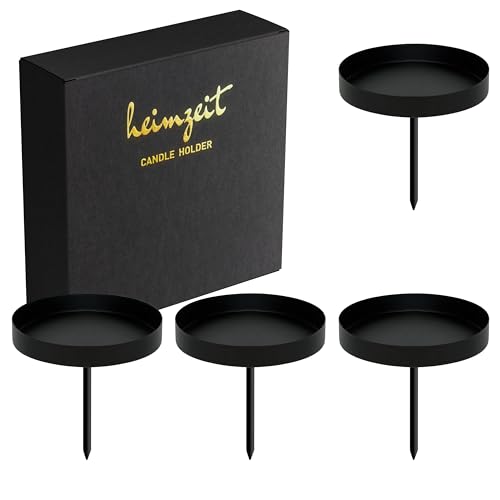 heimzeit Ljushållare för Blockljus upp till Ø80 mm och Bords Ljus i Metall [4 Stycken] Färg: Svart, Stilren Design, Ljusstake för Adventskrans för en Elegant Inredning