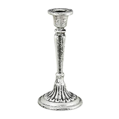 Relaxdays Ljusstake, enarmad, för bord- och stavljus, vintage, antik, ljushållare, gjutjärn, HD 19 x 9 cm, silver