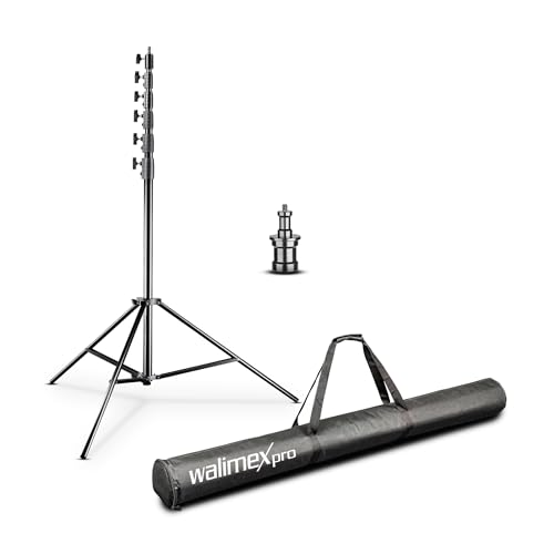 Walimex pro AIR Jumbo 730 lampstativ 730 cm – luftdämpat ljusstativ aluminium 7,3 m maxhöjd 22,5 kg lastkapacitet, stabilt och bekvämt ljusstativ för filmfotograferingsstudio utomhus, med väska