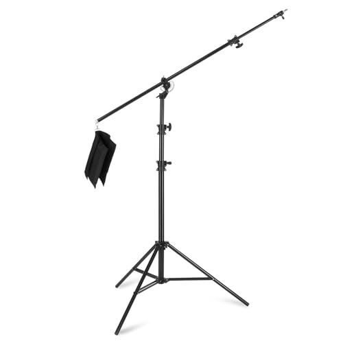 Neewer Hopfällbar metallfotografi ljusstativ med inre fjäderkudde, 1/4 tum skruv och bärväska för ljus, reflektorer, softboxar, bakgrunder – 1,9 m/6,2 fot, svart