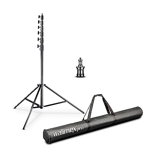 Walimex pro AIR 355 lampstativ – ljusstativ med luftfjädring, max. höjd 355 cm, 8 kg lastkapacitet, mycket hög och stabil, aluminium, ljusstativ för fotograferingsstudio utomhus, svart