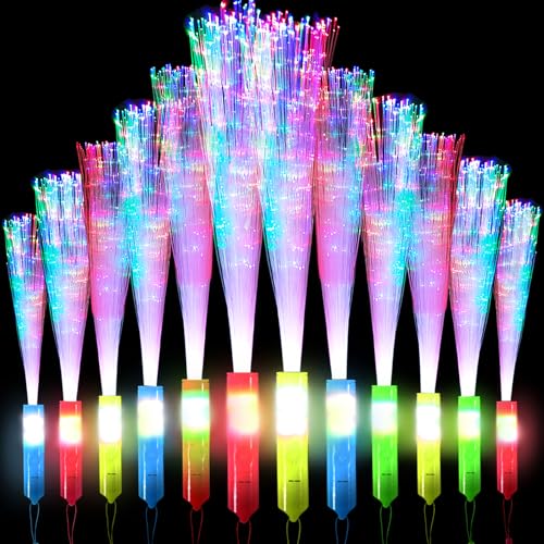 Ljusstavar, 12 stycken ljuslampor, ljusvippa, LED-ljusstav glasfiber, färglampor, ljusstavar partytillbehör, lysande stav barn, lysande stavar party present barnfödelsedag till jul