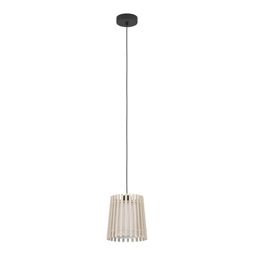 Eglo Fattoria, hänglampa med 1 ljuskällor över matbord, matrum av ljust trä, textil i vitt och metall i svart, hängande lampa med E27-fattning, Ø 20 cm