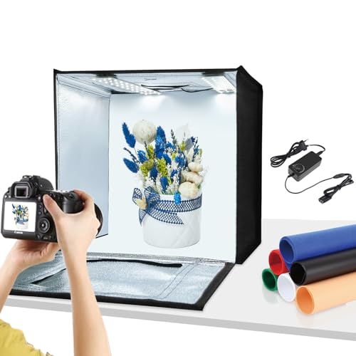 DUCLUS Photobox 60 cm (24 tum), professionell vikbar fotobox set med 2 justerbara LED-ljuspaneler och 6 matt PP-bakdroppar, ljustält för stor produktfotografering