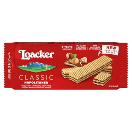 12x Loacker Wafer Napolitan kex Snack Biscuits våffla med hasselnötskräm 175 g med fina italienska hasselnötter