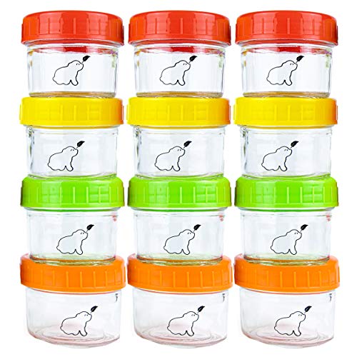Budding Bear Bebismatlådor i Glad 120ml - Diskmaskin-, Frys- & Mikrovågugnssäker (Utan Lock)(12 Pack) - Fri Från BPA, Ftalater, Bly & PVC – Återanvändbara Bebismatlådor