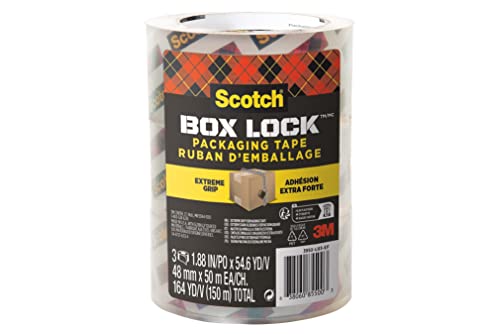 Scotch Box Lock Förpackningstejp, 3 rullar, 48 mm x 50 m - Stark klar packningstejp, perfekt för packlådor och paket