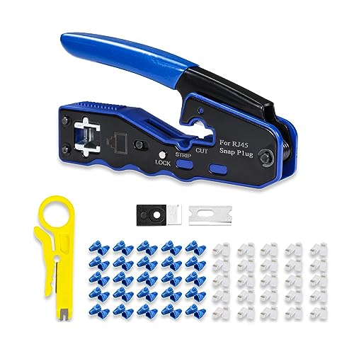 6COMGIGA Allt-i-ett RJ45-verktygssats, Ethernet-crimptång för Cat5e Cat6a 8P8C modulära kontakter, med miniskalare, 50 kontakter och CAT6-lock