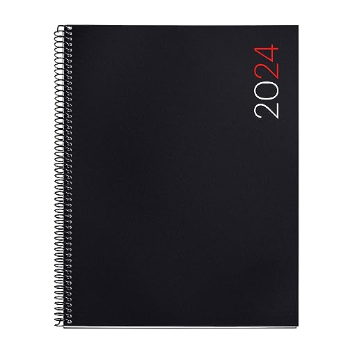 Miquelrius - Årlig agenda 2024, Dag sida, Aktiv storlek 117 x 182 mm, Flexibelt lock polypropen, Spiralbindning, Spanska, Engelska och Portugisiska, Svart