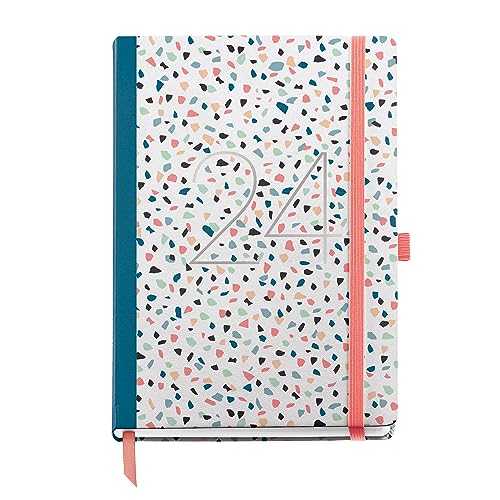 Miquelrius - Årlig agenda 2024, Dag sida, Plus storlek 155 x 213 mm (liknande A5), Hårt lock, sydd bindning, Gummiförslutning, Spanska, Engelska och portugisiska, Abstrakt konst