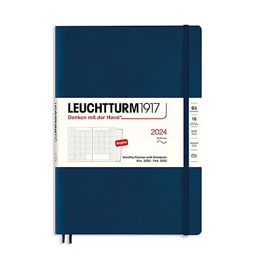 LEUCHTTURM1917 367565 månadsplanerare med anteckningsbok, mjukt lock, komposition (B5) 2024, 16 månader, marinblå, engelska