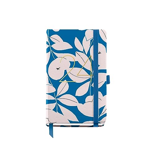 Miquelrius - Årlig agenda 2024, Dag sida, Passport storlek 90 x 140 mm, Hårt lock, sydd bindning, Gummiförslutning, Spanska, Engelska och portugisiska, Blommande blå med stämpling guld