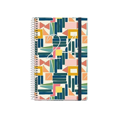 Miquelrius - Årlig dagordning 2024, Vecka Vista, Plus storlek 155 x 213 mm (liknande A5), Hårt lock, sydd bindning, Gummiförslutning, Spanska, Engelska och Portugisiska, Abstrakt konst