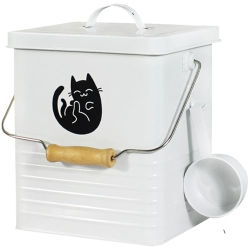 Cat Food Bin, Cat Food Storage Container 8 x 7 x 9 Söt förseglad hundkattmatbehållare med lock & handtag Dampproof Cat Food Bin med Measuring Cup