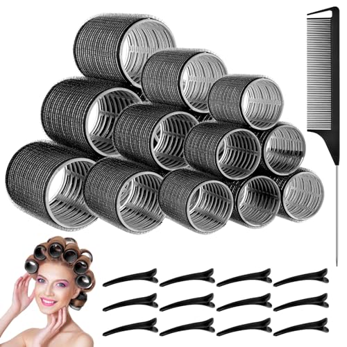 Locktång stora lockar 24 stycken, curlers utan värme självhäftande tejplindning, jumbo hårrullar 64 mm med 12 stycken anka klämmor för långt och kort hår