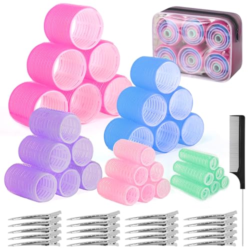 BELICOO 60 stycken papiljottset, 5 storlekar 60 mm 48 mm 36 mm 25 mm 15 mm hårrullar med 28 stycken klämmor i rostfritt stål, locktång, stor för långt medium kort hår, flerfärgad