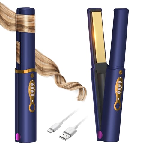 LYPPUL Mini trådlöst hårstrykjärn, 2-i-1 plattång och locktång, reseplattång, bärbar USB-uppladdningsbar, uppladdningsbar med 3 temperaturinställningar