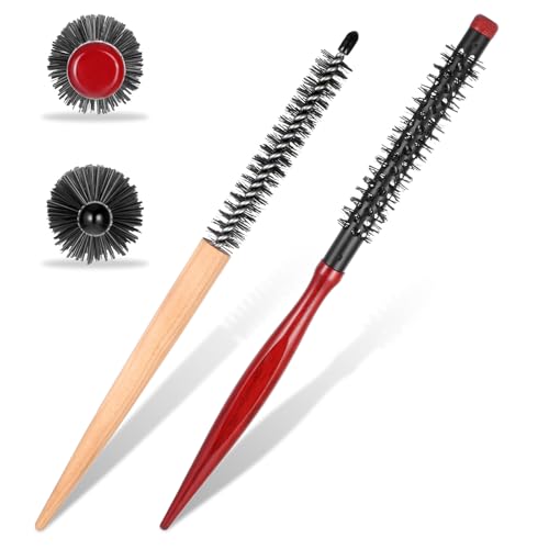 simarro 2 st liten rund hårborste, mini rund träborste, rulle, tyst, frisör, kamar, styling, volym, hårborste, mustasch, locktång för tunt, kort hår, lugg, skägglyftning och lockning