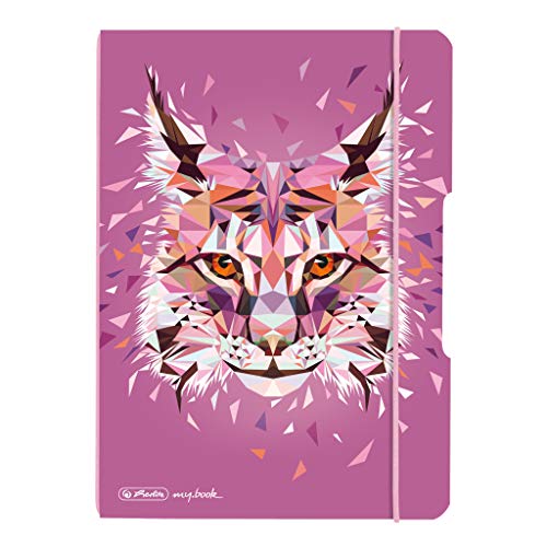 Herlitz 50027262 Flex anteckningsbok med avtagbart fodral, A4, 2 x 40 ark, Design: Wild Animals Wolf, 1 artikelblock A4 lin. 28 Lodjur