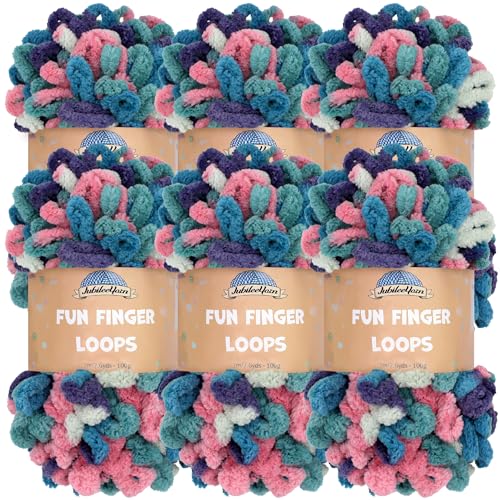 JubileeGarn med roliga fingerslingor – polyester jumbo viktögla – 100 g/skein – lodjur – 6 nystan