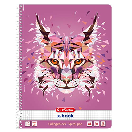 Herlitz 50027262 Flex anteckningsbok med avtagbart fodral, A4, 2 x 40 ark, Design: Vilda djur varg, 1 artikel A4 Gepunktet Lodjur