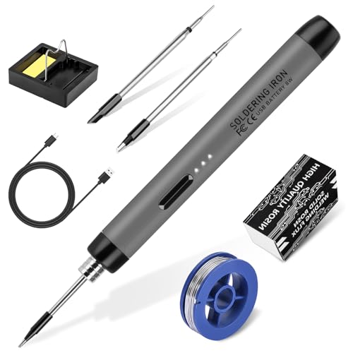 KKMOL Trådlöst lödkolvsset, USB-driven lödkolv med 3 justerbar temperaturer på 300–450 ºC, 3 lödspetsar, lödkolvsstativ, lödpasta, lödset för reparation av svetsning, järnhaltig, grå