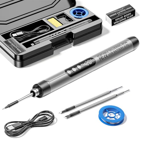 Daakro Trådlös USB-lödkolv kit med justerbar temperatur, 3 lödbrytare, lödtråd, lödpasta, lödpasta för elarbeten (grå)