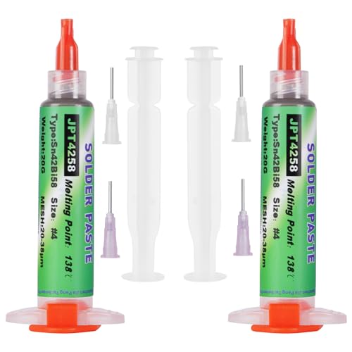 SUNOYA 2 stycken blyfritt lödpasta, flödesvar, Sn42 Bi58 sprutlödpasta, lödflödesmedel, soldering flux, solderpasta, lödpasta Smd låg temperatur 138 grader, för LED SMD lödtenn