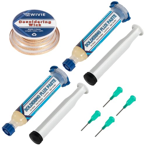 WIVIE Blyfritt no Clean-lödpasta flytande (3 förpackningar) & 2,5 mm lödning avlödning, 3 m/10 fot avlödning ren koppar avlödningstråd för lödborttagning (2 stycken)
