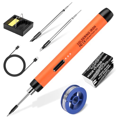KKMOL Trådlöst lödkolvsset, USB-driven lödkolv med 3 justerbar temperaturer på 300–450 ºC, 3 lödspetsar, lödkolvsstativ, lödpasta, lödset för reparation av svetsning, järnhaltig