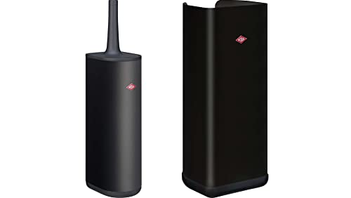 WESCO Set med 1 x toalettborste LOFT pulverlackerad stålplåt med silikonborste och pappersrullehållare i halvrund form plastbas – färg: matt svart, en storlek