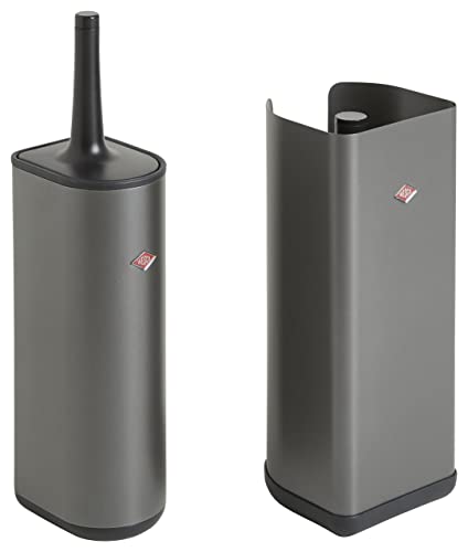 Wesco Set med 1 x toalettborste LOFT av pulverlackerad stålplåt med silikonborste och 1 x halvrund pappersrullehållare loft med plastbas – färg: grafit matt