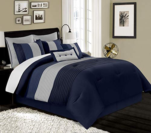 Chezmoi Collection Loft 8-delat lyxigt randigt täcke set (drottning, marinblå/grå/blå)