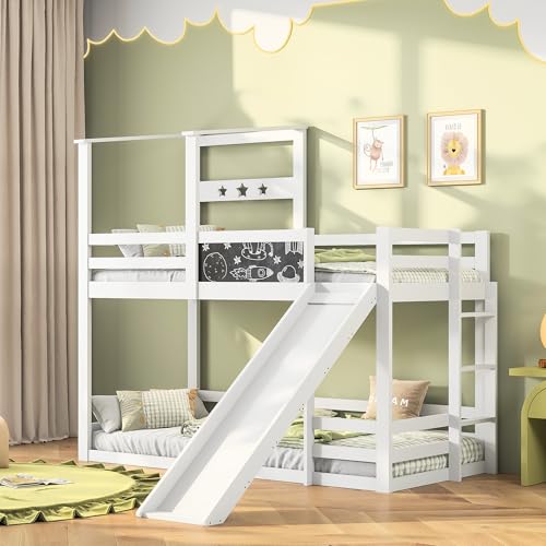 Gecheer Loftsäng med skrivbord, hög våningssäng med stegar och träram, platsbesparande, för barn och vuxna, 90 x 190 cm, massivt furuträ, vit