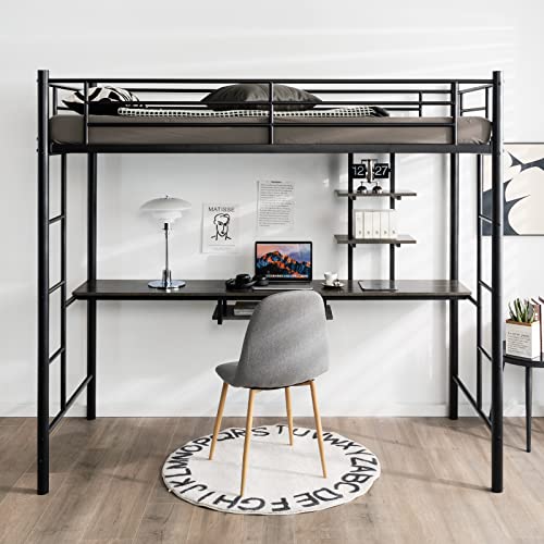 COSTWAY Loftsäng med skrivbord, med 2 stegar, våningssäng i metall, sängstomme för tonåringar och vuxna (svart)
