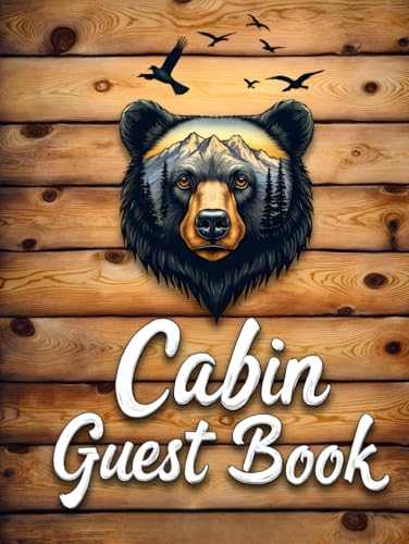 Cabin Vacation Guest Book: Woodgrain Rustic Bear Themed Log Cabin Sign-In Book for Guests: Record Stays, Memories, Adventures & Recommendations for Mountain, Lake, & Forest Retreat Rentals